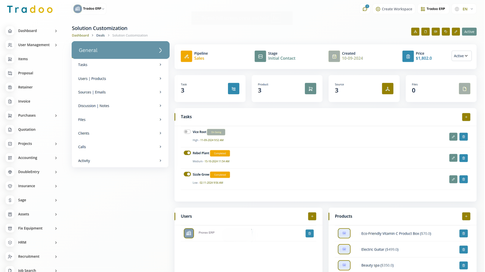 Tradoo ERP empowers you to manage all your core business functions—finance, HR, inventory, sales, and more—seamlessly from a centralized platform. With specialized modules, you gain greater efficiency, improved accuracy, and a system tailored to your growth and industry-specific needs.