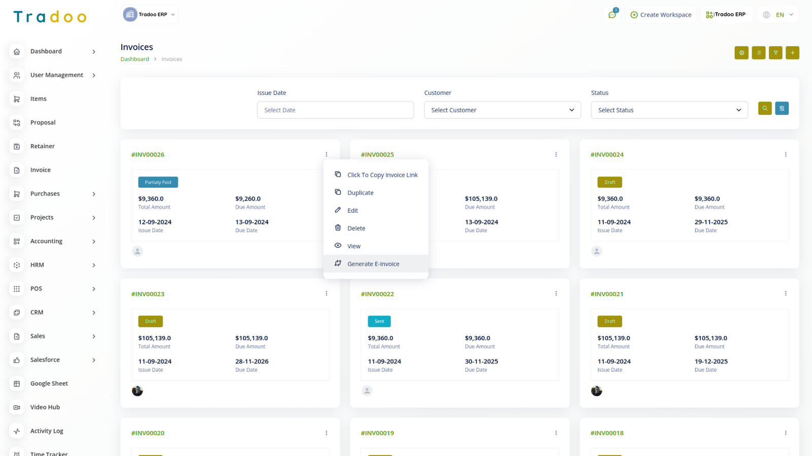 Manage all your business functions seamlessly from a single platform with Tradoo ERP.