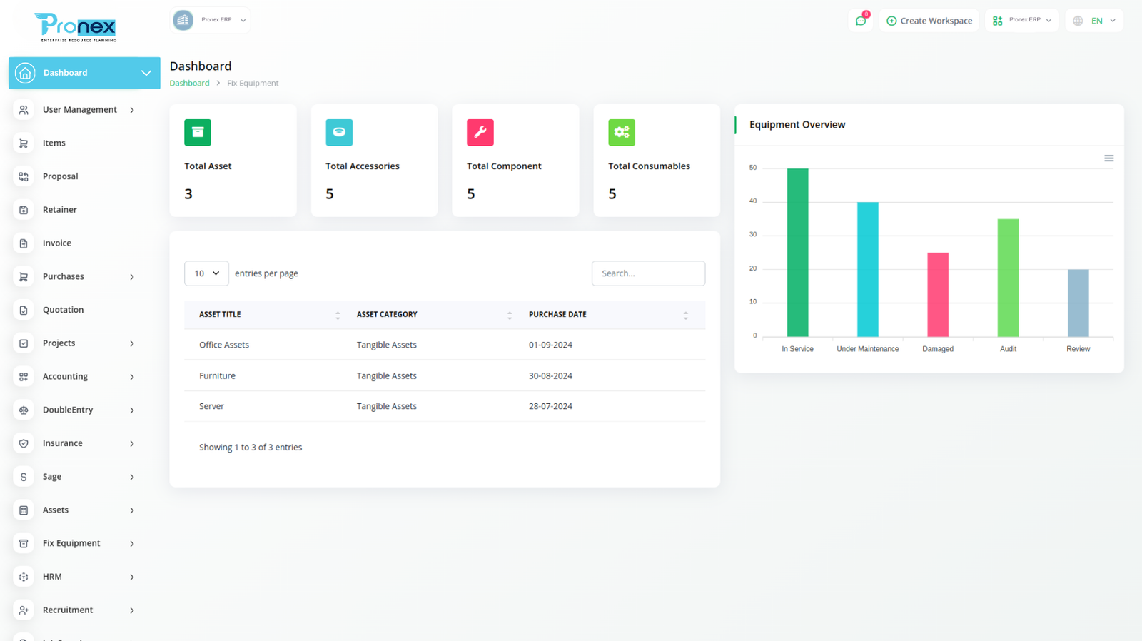 The Asset Management module enables organizations to efficiently track and manage equipment, facilities, vehicles, and other assets in accordance with industry standards. Users can monitor individual assets, schedule maintenance tasks, assign responsibilities, and maintain detailed records of maintenance work. This ensures optimal asset utilization, reduces downtime, and enhances operational efficiency.