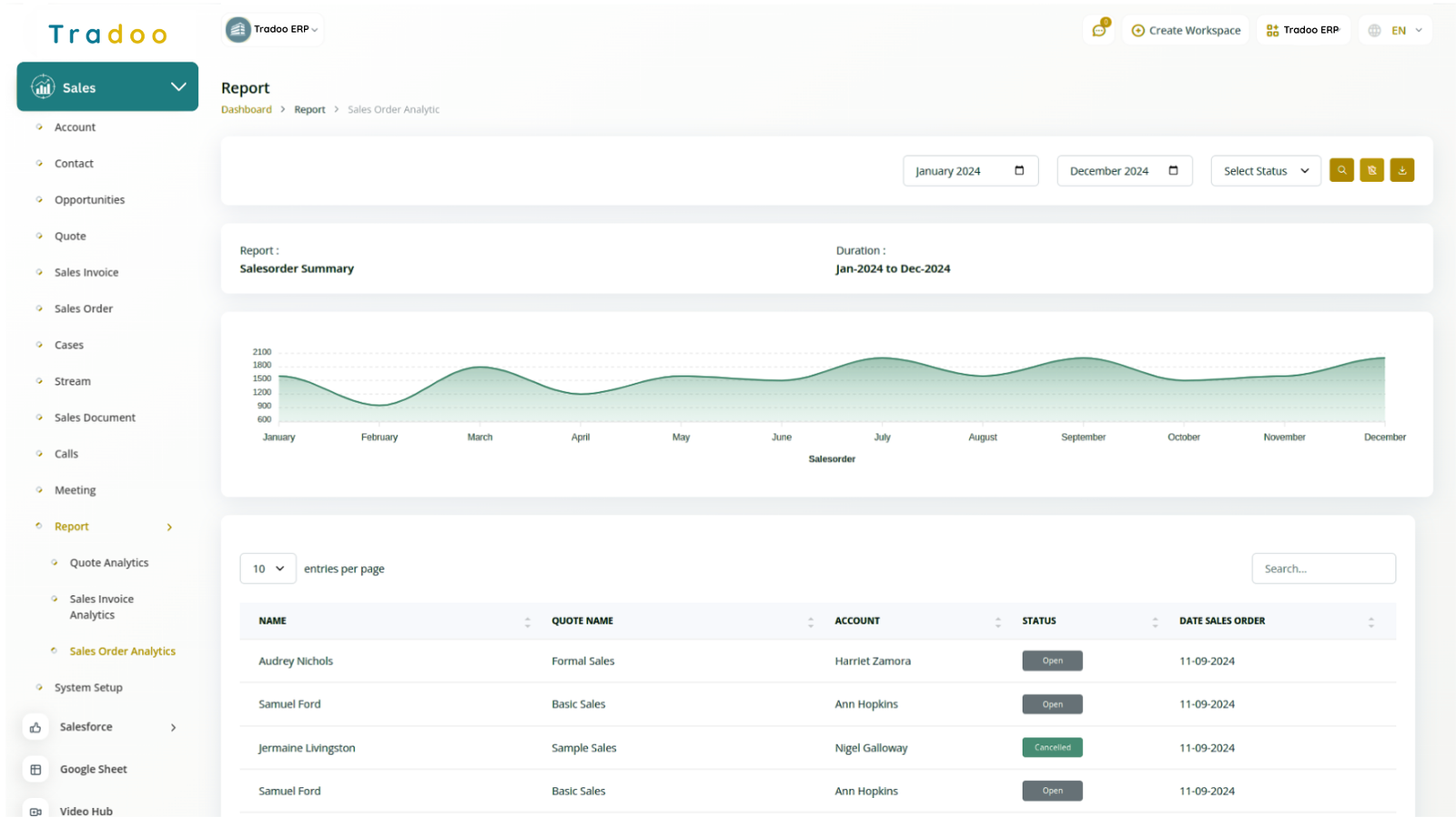 Get smart, automated analytics delivered right to you. Access detailed reports for sales orders, invoices, and quotes—all filtered by customizable parameters such as status, amount, assigned users, and creation date. Easily print invoices, add new items to existing orders, and manage everything from one centralized report dashboard.
